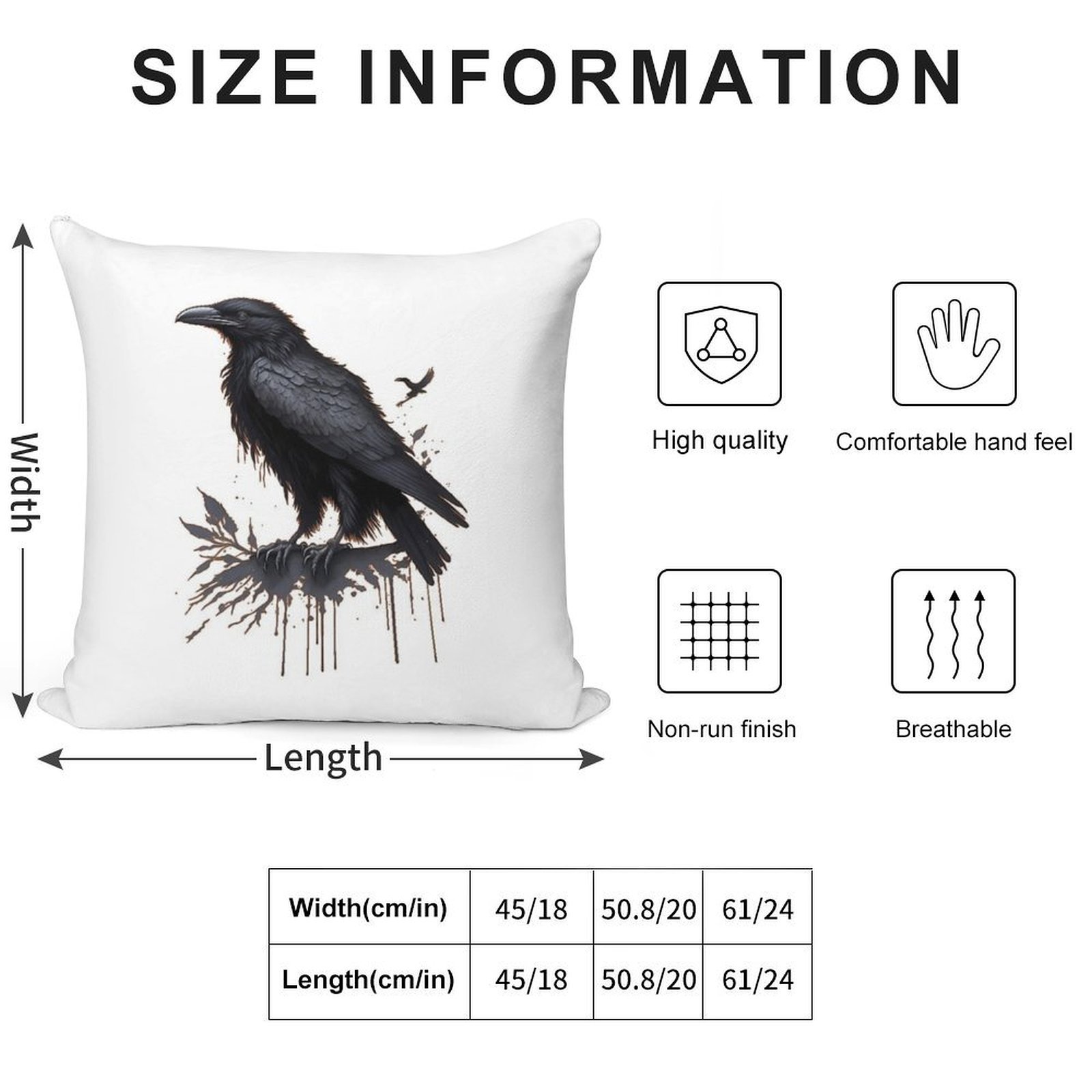 - Reinforced stitching along the edges prevents fraying and extends the life of your Black Raven Pillowcase.